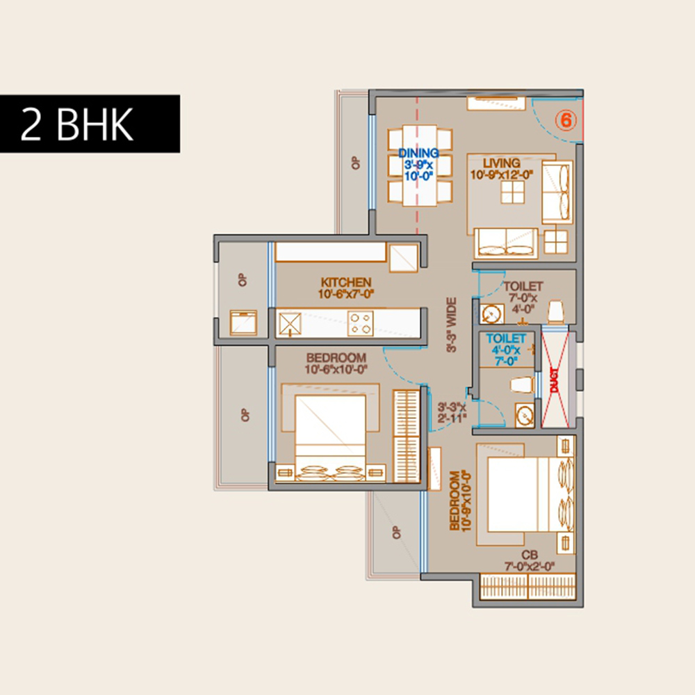 | 2 BHK | 736 sq. ft. | Click For Price |
